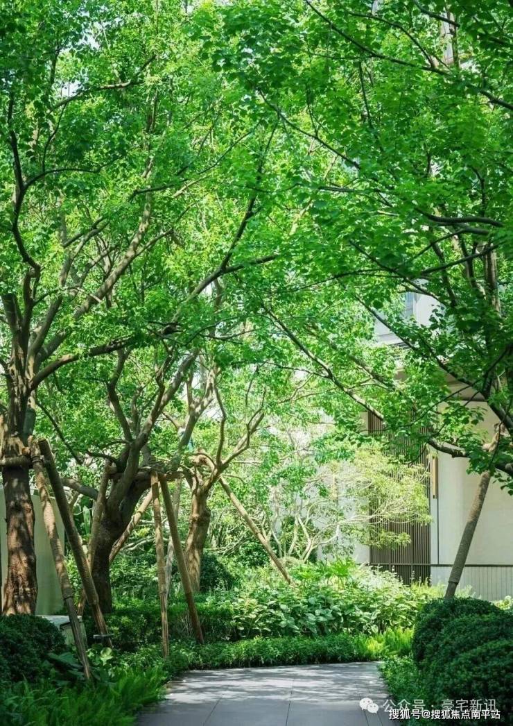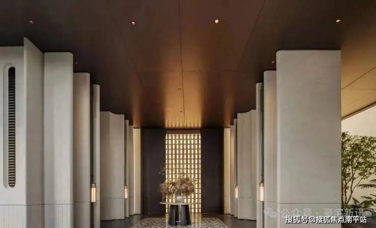 园林设计上,森系度假美学景观,公区质感跃级,优选石材、铝板、铝格栅等,入户大堂奢华感拉满。