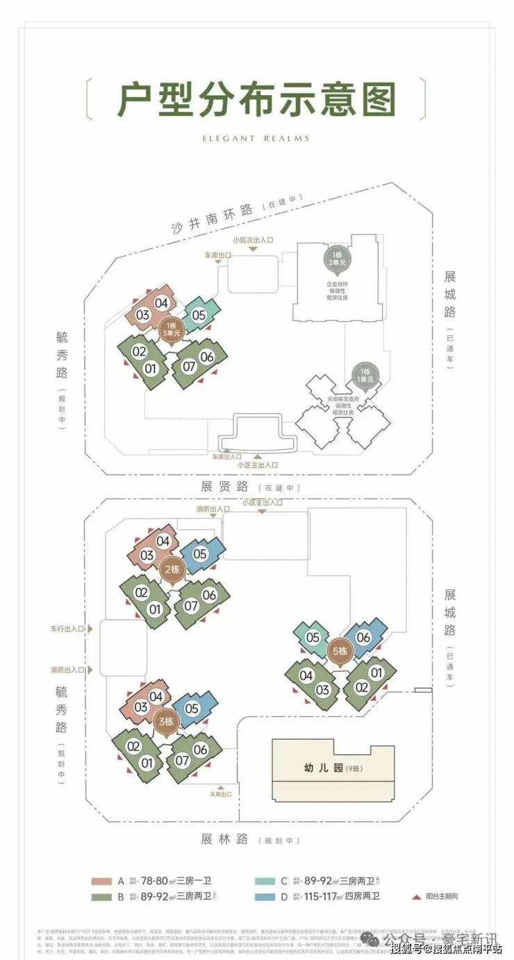 招商会展湾雍境名邸位于宝安沙井大前海会展湾片区的招商会展湾雍境名邸,本次是招商会展湾雍境二期,首推1栋3单元的195套房源,面积段有80㎡3房1卫,91㎡3房2卫,92㎡3房2卫3种户型,是3梯7户的普通高层,预计2027年9月精装交楼。