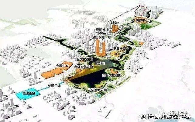 市政:80万㎡新会展中心,未来的文创中心—惠州院子(规划中)、奥林匹克体育中心、读者文化公园,惠州眼等,最具代表性的建筑都落于此地。