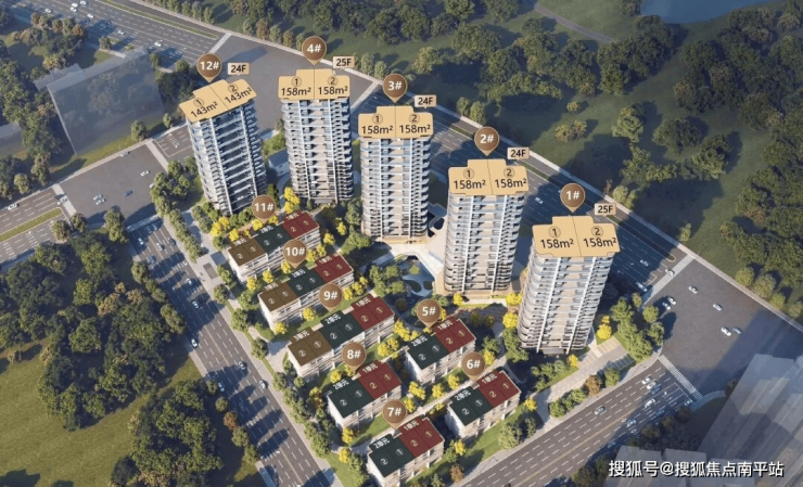 其中,1、2、3、4、12#为高层,1、4#为24F,其余均为25F,12#为143㎡户型,其余均为158㎡户型。