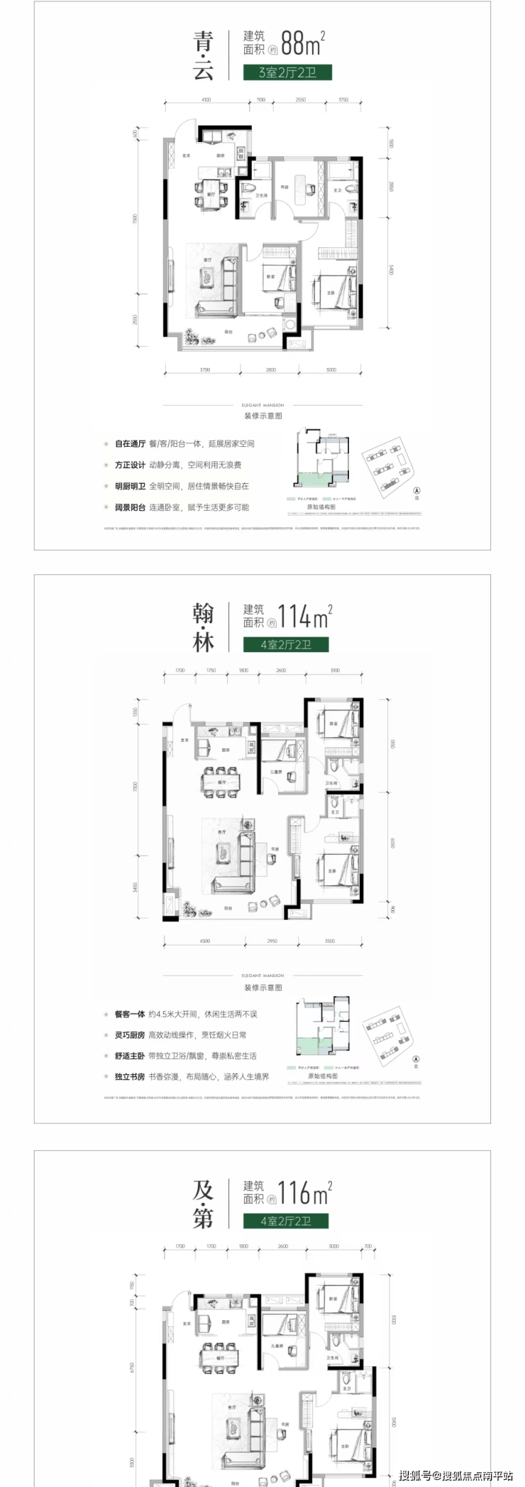 产品,是生活品质的直接体现。卓越朗宋以匠心独运的设计,为业主打造了高品质的居住空间。项目规划为约2.4容积率的低密舒阔小高层住宅,约100%得房率(业主自行设计装修后)的建面约88-116㎡全生命周期成长毛坯户型,满足了不同家庭的居住需求。