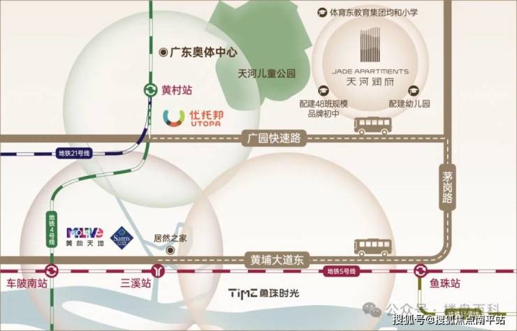 项目位于广州市天河区岐山路西广园快速路天河儿童公园旁,现成最近的地铁是13号线珠村站,规划广州地铁19号线吉山站附近;坐落于天河智谷板块,处广州科技中轴上(广州东进第三中轴),承载珠江新城、金融城CBD的外溢居住需求;享天河智慧城、天河智谷CTD的千亿产业红利。