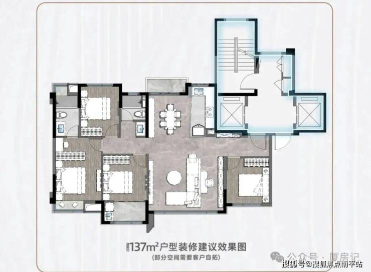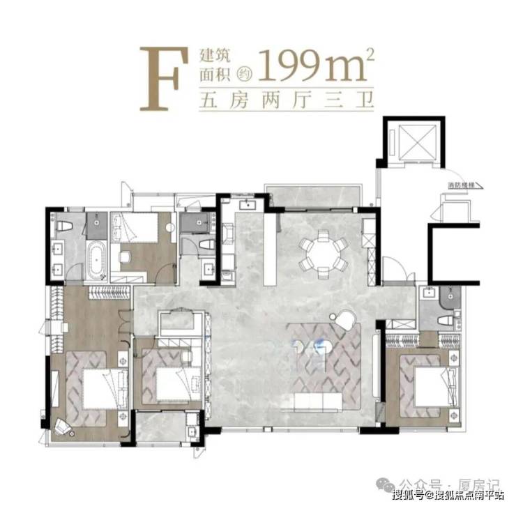 •主力户型涵盖119-199㎡,以4室2厅、5室2厅为主,包括119㎡4室2厅、137㎡4室2厅、143㎡4室2厅、171㎡4室2厅3卫、199㎡5室2厅3卫等;所有户型均方正通透,南北朝向,厨卫全明,配备双阳台与主卧套房,大户型还具备客餐厅相连、动静分离的设计,部分高楼层可眺望五缘湾内湾海景,适配高端改善型居住需求;