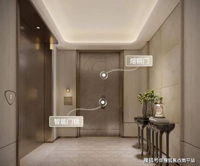 再比如,约190㎡入户门,采用了熔铜门、不锈钢精铸暗铰链。