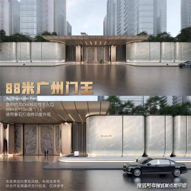 尤其值得一提的是,项目大门长达88米,高达10米,被誉为广州门王,大量运用奢华石材,彰显非凡气派。