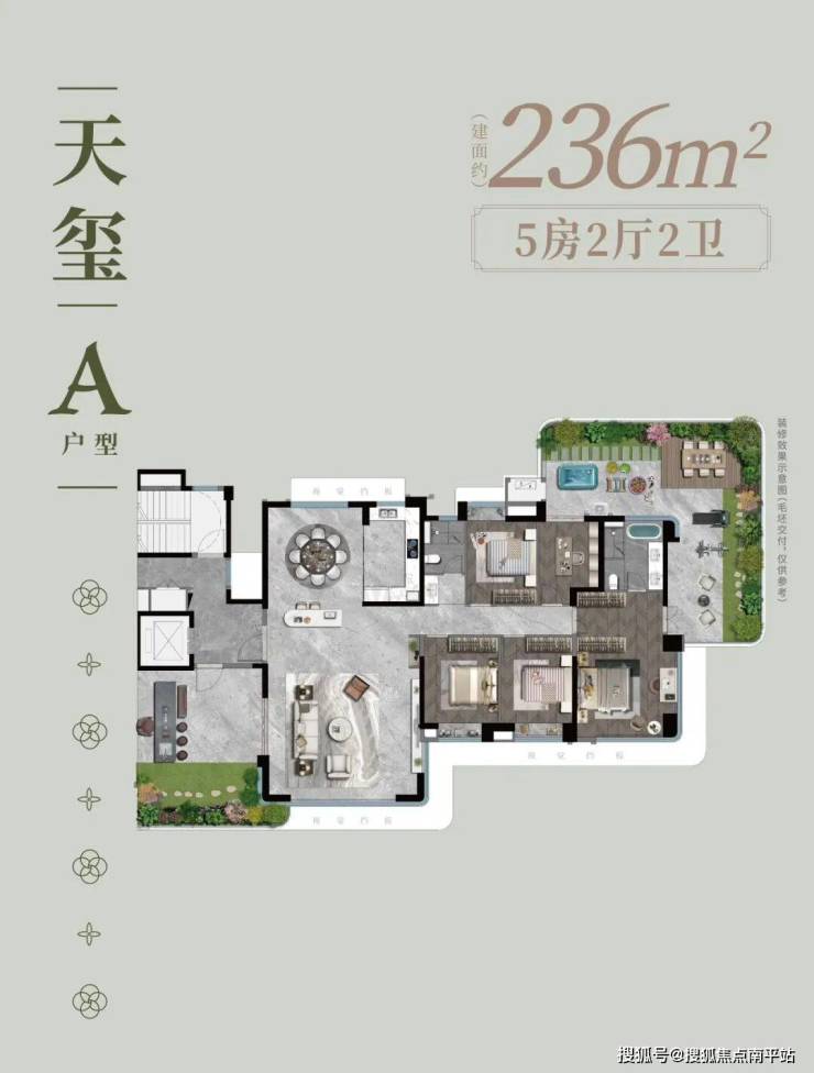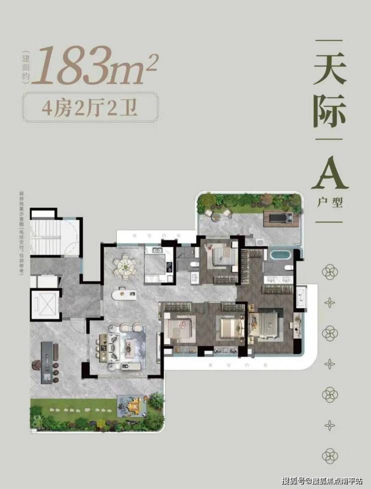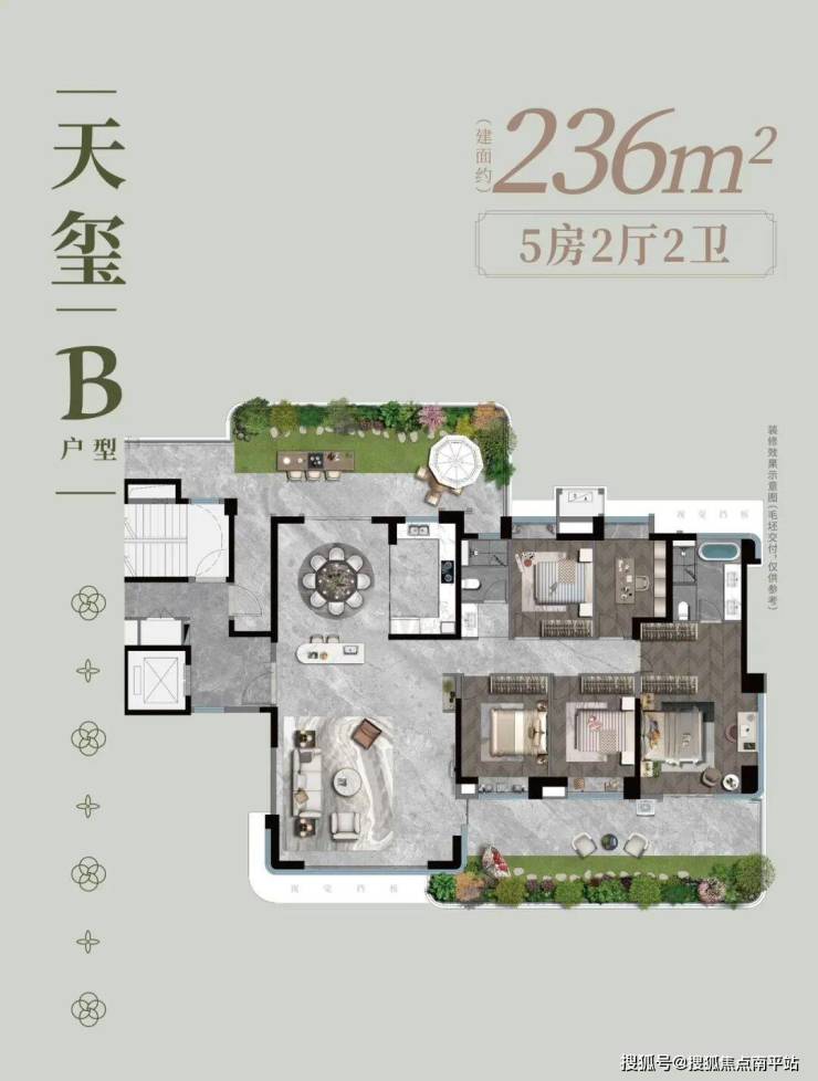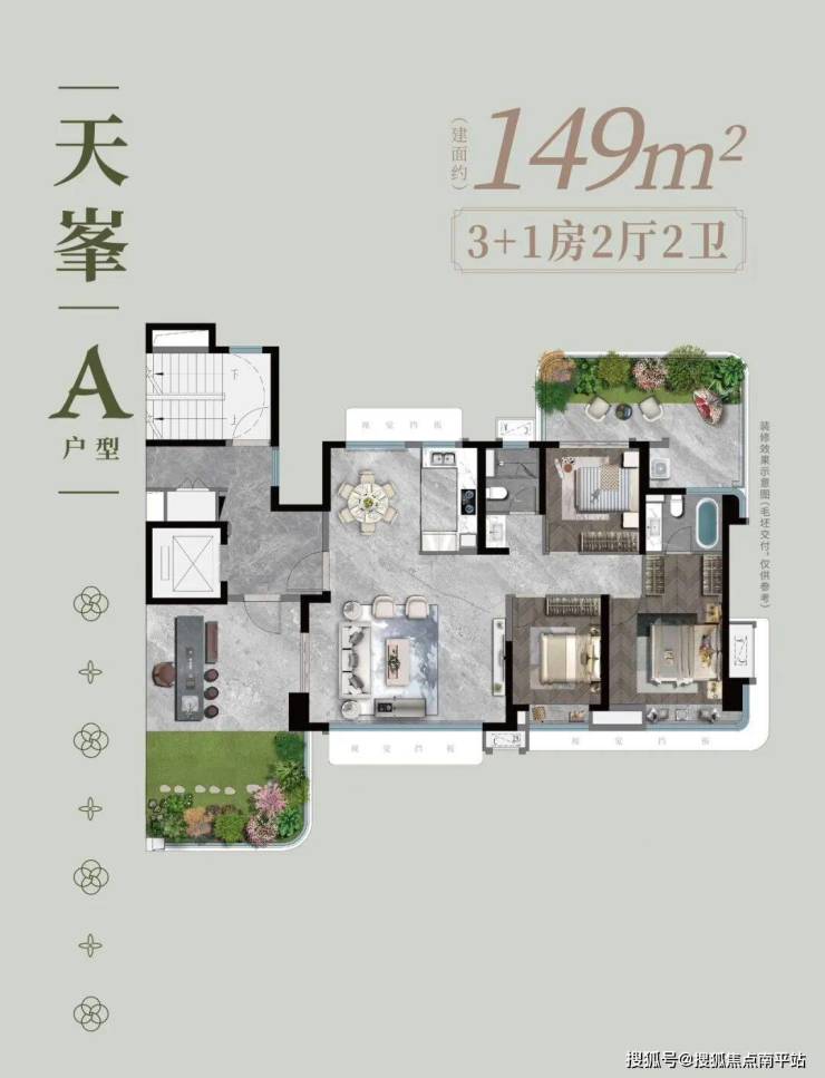 2.四代宅优等生:带南北双庭院+6.3米挑高露台+3.15层高+超120%得房率