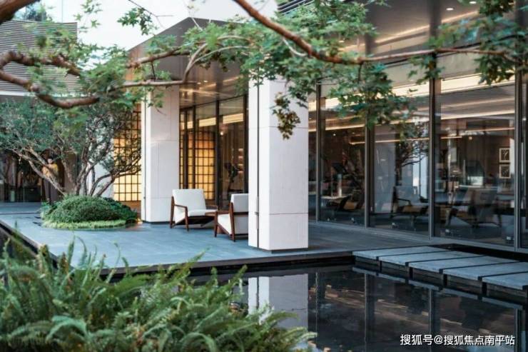 进入下沉庭院,可见中央水景被悄然抬高,静水自流淌动,无风也起涟漪。