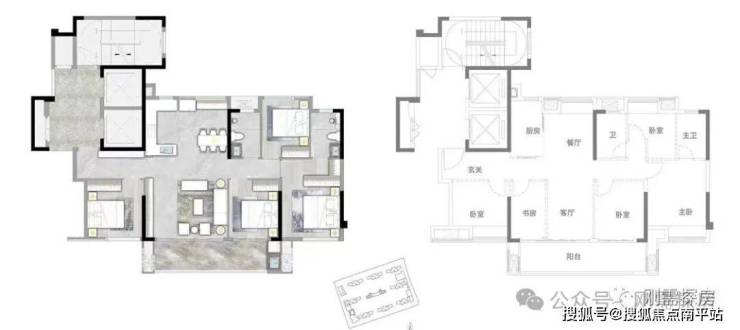 从户型布局对比来看,基本接近,差异就是玺云的客厅面宽更大。