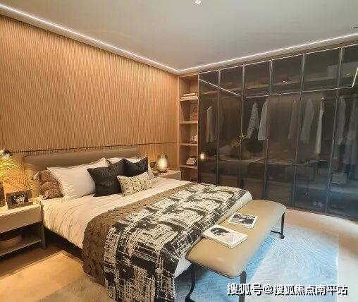 三层是约44㎡的奢华主卧套房,设有步入式双排衣帽间,还有大浴缸。还配有露台花园,可观景,畅谈,。具有优质的生活体验,又充分保证了私密性。