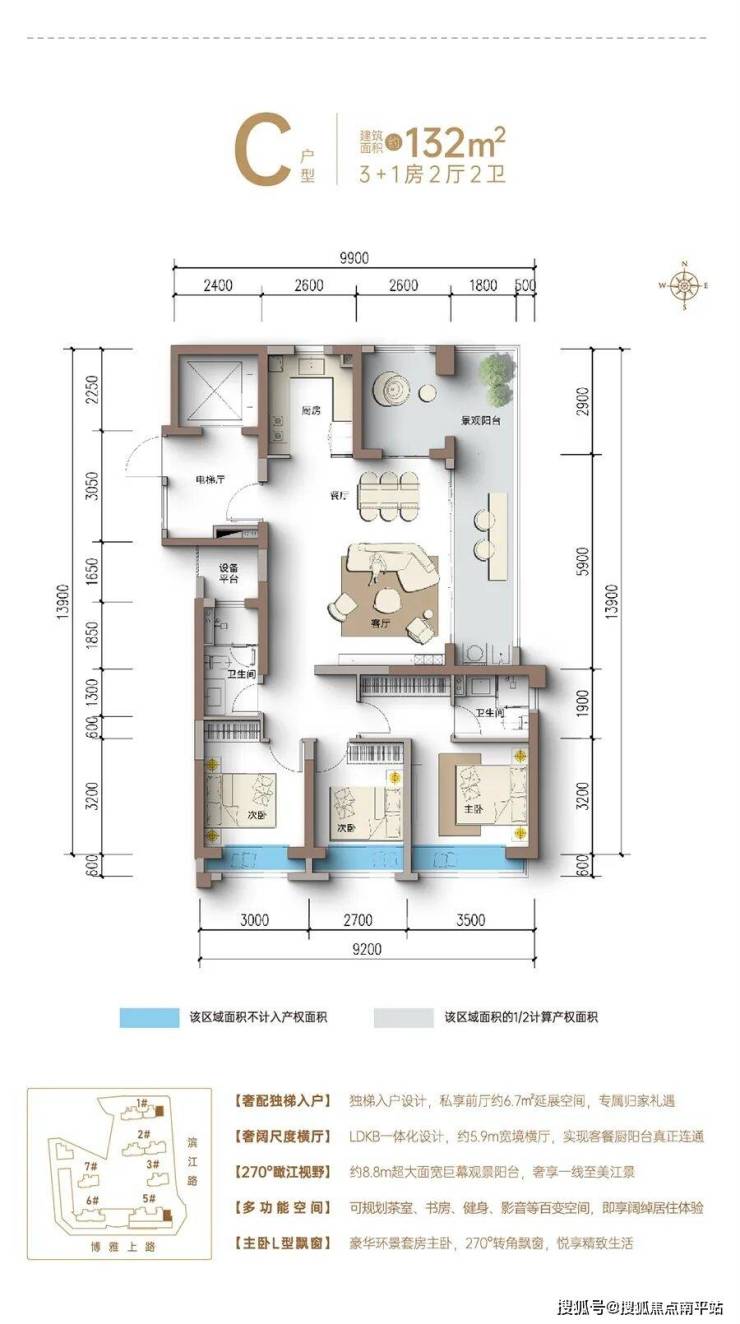 面积区间:约108-142m2一线江景高定奢居
