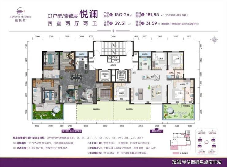 C1户型/奇数层 悦澜 四室两厅两卫