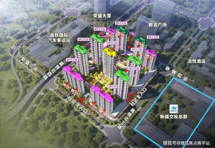 高铁站周边已形成城市能级综合商圈——高铁商圈。疆悦府作为高铁商圈唯一在售四代住宅项目,一街之隔相邻新疆交投总部,地铁2号线-乌鲁木齐站距疆悦府直线距离620米,预计2026年6月运营。乌鲁木齐高铁站距离疆悦府直线距离150米。以城市中心的地理优势,独享高铁商圈黄金0.5公里优质配套,出则繁华尽揽、入则静谧独享的稀缺核芯生活。