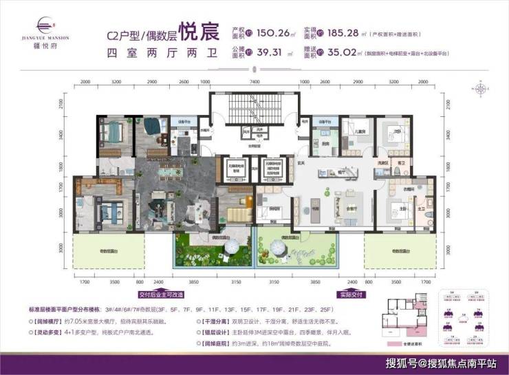 C2户型/偶数层 悦宸 四室两厅两