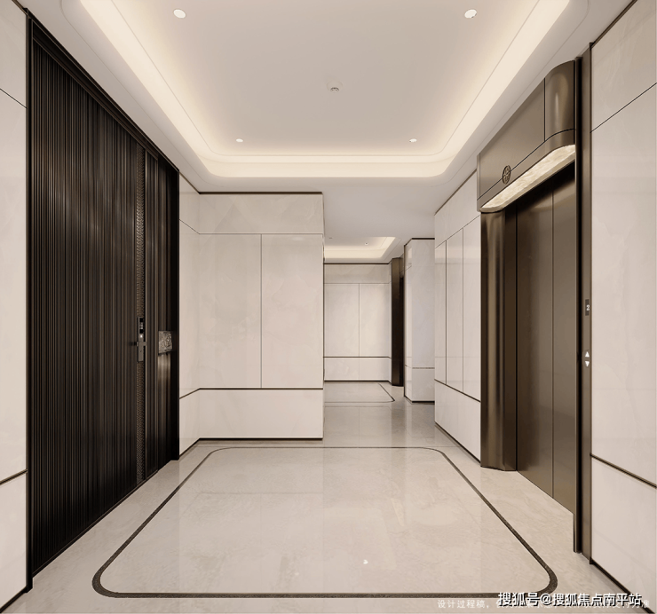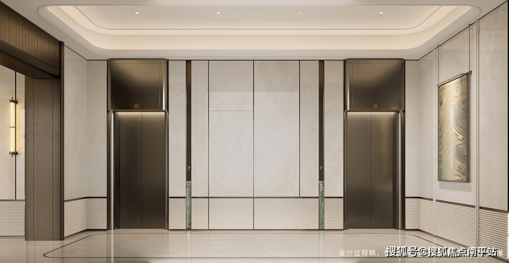 步入内部, 约3.7米挑高精装大堂与电梯厅,以细腻材质铺陈静谧优雅的氛境,诠释酒店式居住美学。