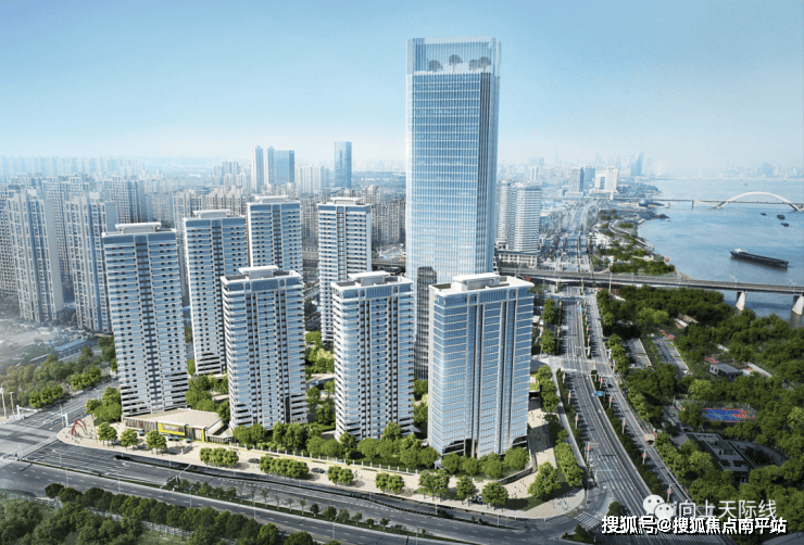超高层办公建筑以斜向曲线呈现风帆形态的外立面,呈现出“乘风破浪”的独特风姿。其中,写字楼寓意为“时光之印”,代表着豫章故郡、人杰地灵,九龙一号、一飞冲天;丰碑式的造型仿佛扎根于此,像一个巨大的印,意味着永恒;中央一道向上的光直指苍穹,象征九龙湖无限的未来;对面为滕王阁,自地面升出一条简洁冲天的“1”字线条,简洁优雅,四平八稳,中正典雅,寓意深远,成为南昌江边的一束光。