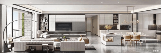 LDKGB设计,客厅、餐厅、厨房、空中花园和阳台的一体化空间。这种设计不仅提升了空间的利用效率,也为居住者带来了更为宽敞舒适的生活体验。