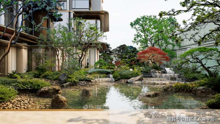 它萃取了东方造园智慧中“小中见大、曲径通幽”的精髓,把园林的设计内核凝练为“四幕九境”,将白云山的“云、林、泉、石”四种自然元素,解构并重组成社区生活的背景,在城市的喧嚣中铺陈开一幅“湖上春来似画图”的生动长卷。