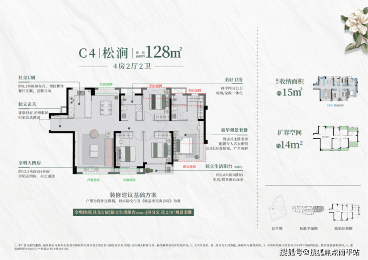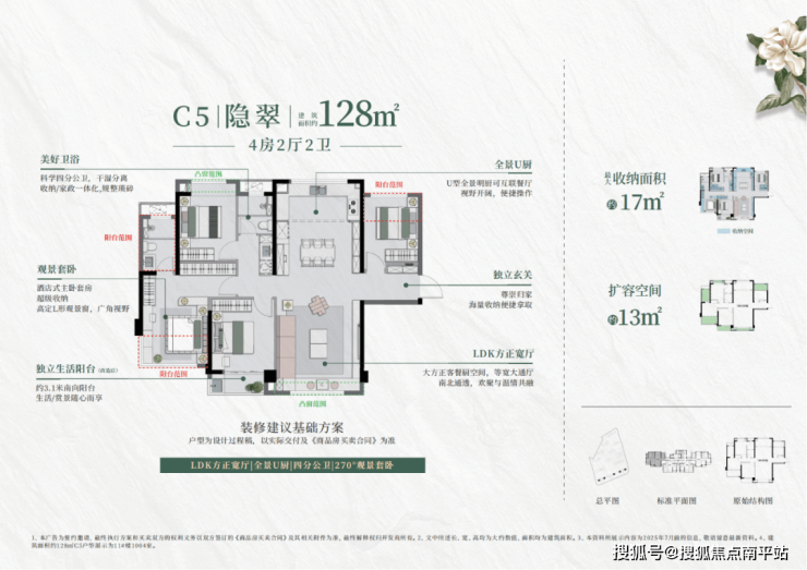 「隐翠」:全景U形厨房、独立玄关与方正LDK宽厅一体贯通,烹饪、收纳、社交自在互联;270° 视野的观景套卧是点睛之笔,把朝霞落日、四季景致变成日常背景板,让“风景住进生活里”。更难得的是充足收纳与灵活扩容设计,杂物隐身、空间随需求生长,家越住越通透,越住越有“大”格局。