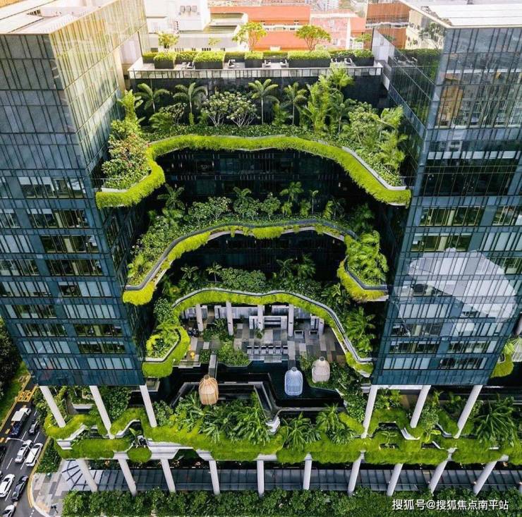 像皮克林宾乐雅,整栋建筑都被绿色植物包围,共享空中花园提供更多休憩、休闲空间。