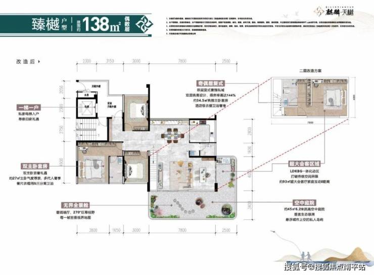奇偶层设计 挑高6.2米 约45㎡空中花园