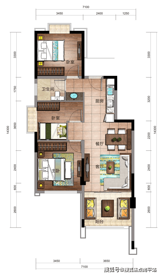 远山瞰景公寓·B户型:套内面积约64㎡,使用面积约91㎡,125万起,三室两厅一卫,海南稀缺紧凑型三房,南北通透,明厨明卫。