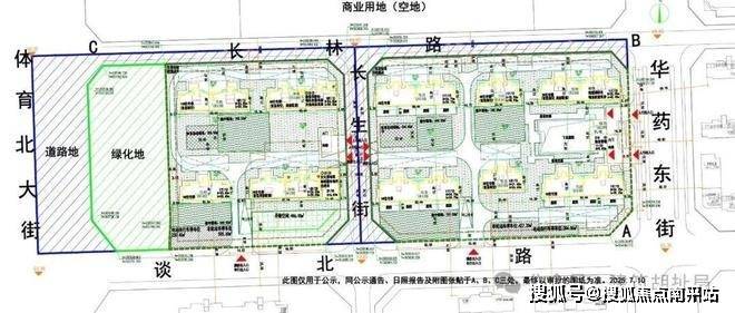 用地东侧是华药东街,道路设计宽度40米,西侧能通过南边两侧的规划路直接联通到体育大街上。北侧长林路、中间长生路道路宽度都是15米,南侧谈北路宽度25米。对于这种规模的小区,交通是十分便利的,但是也带来个问题就是所有住宅都是临路的,没有一栋楼能避免,地块太小了没办法,跟南边地块一个毛病。不过这里也算这一大片地的内部道路了,到时候情况应该还好。另外地块北边是商业用地,未来不知道如何规划,什么业态。要是真商业的话,北侧道路不知道是否有干扰。(要是商墅那就完美了,不过应该不是,当时这块住宅跟商业是打算一块出让的,没人想要商业地,最后只好分开了)