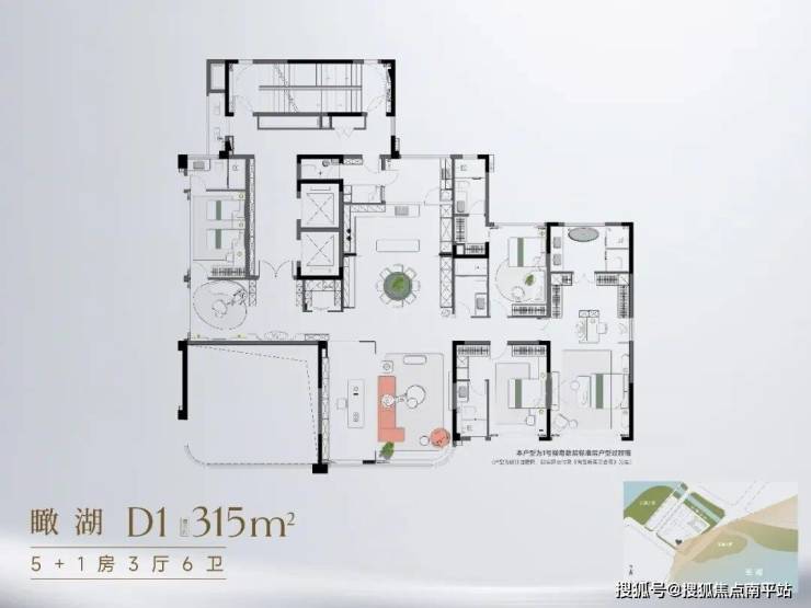 【三套卧设计】三套卧设计充分满足一大家子的独立洗漱卫生需求,约32㎡五星级奢华主卧采用小家化设计,搭配270°转角观景落地窗,质感十足。
