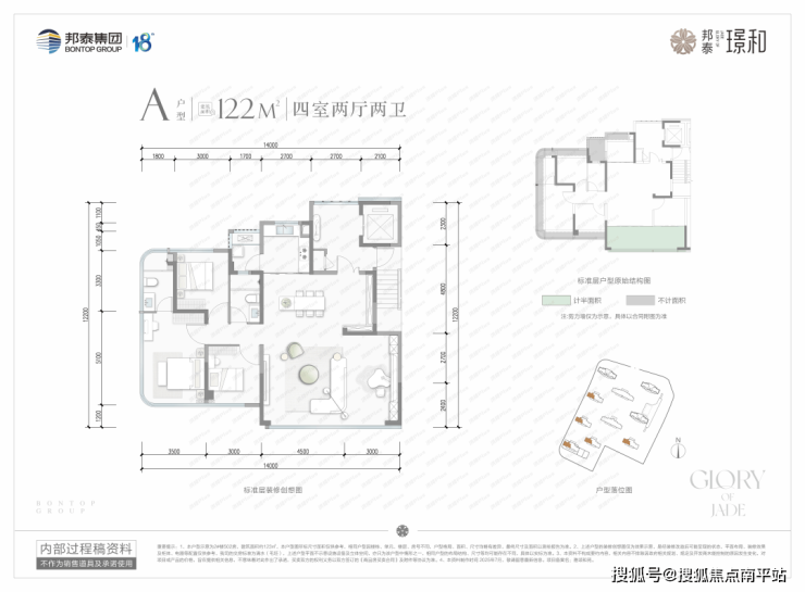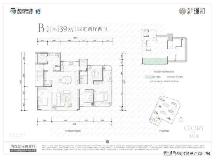 邦泰一共四个户型,小高层122&139㎡,高层139&179㎡。