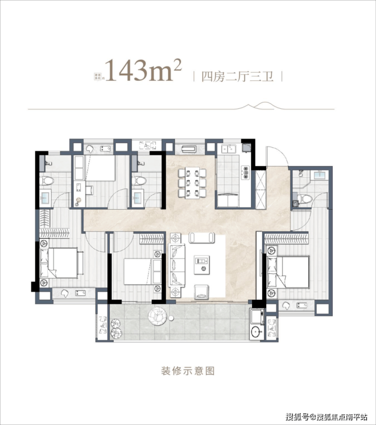 ▍建面约143㎡四房