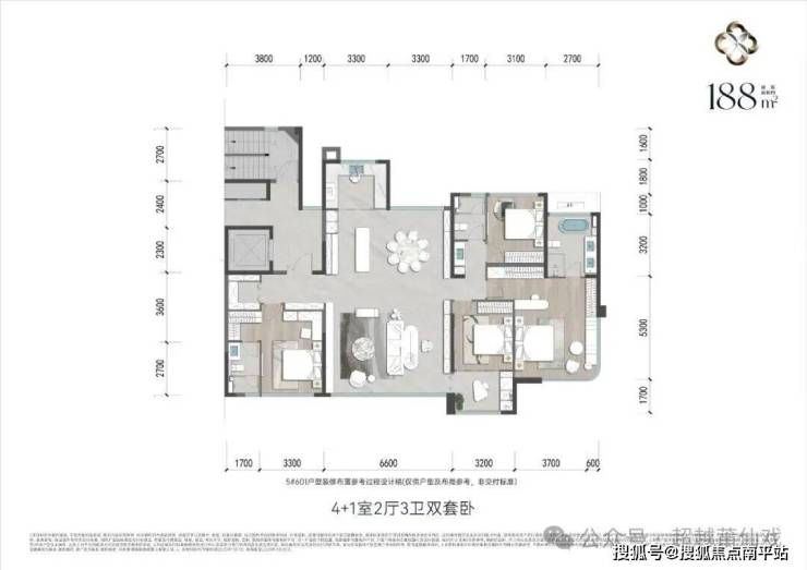建筑面积约188㎡四室两厅三卫(双套卧)当属改善优选。 纯板楼结构实现空间利用率拉满,实得面积超218㎡,实际使用率达94.12%;约19.1米南向面宽、5面宽朝南,搭配约6.6m横厅与宽景阳台,南北通透,采光视野双优;双套卧配独立卫浴、步入式衣帽间,主卧带转角窗,兼顾私密尊崇;卫生间带家政空间, 主卧收纳充足,且客厅阳台让湖山景致与生活相融,满足三口之家到三代同堂全周期需求。