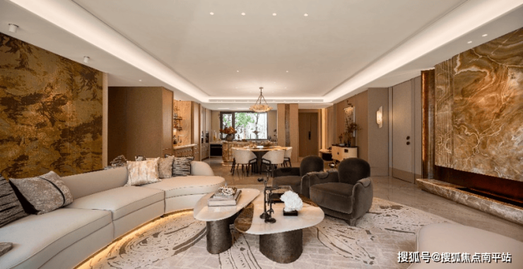 168㎡户型硬装设计城市NEW SCHOOL 为切入点梳理整体设计逻辑,空间以超大客餐厨空间为空间动区展开,串联起卧室空间的静区。通过显性的材质结合精细化的工艺感释放整体空间的奢华感。