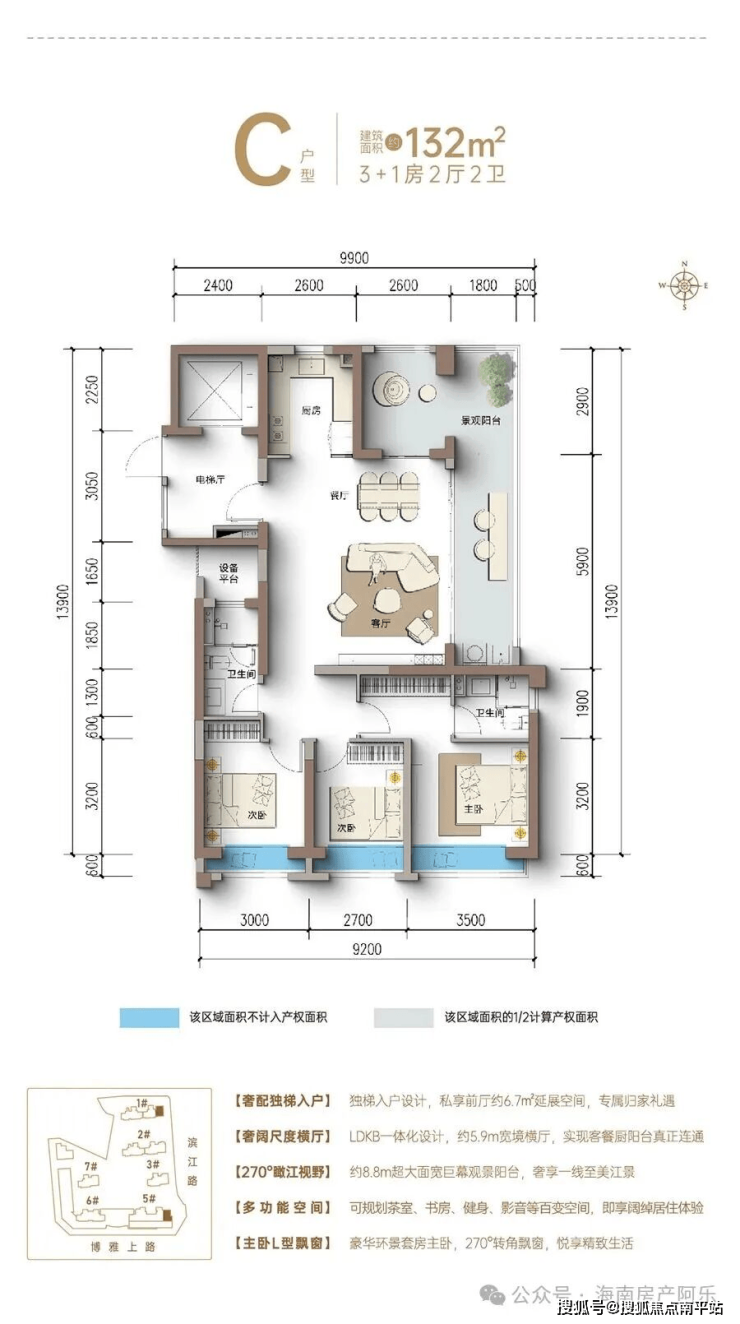 地处海口滨江新城核心区域,占据南渡江一线江景资源,周边交通便利,配套成熟,临近国兴大道、江东新区等核心区域,是海口主城区与江东新区的黄金交汇点,同时坐拥繁华与宁静。