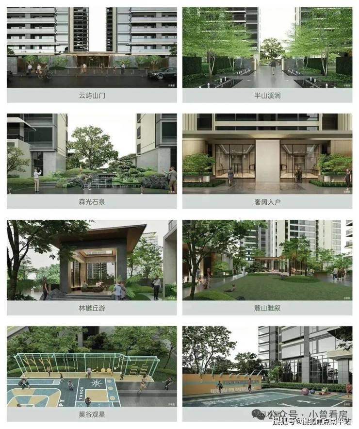 项目园林以 “一轴八苑” 布局精心打造,人行主入口两侧的礼仪中轴和艺术水景与白云山相互呼应。