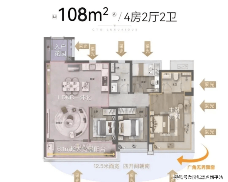 - 108㎡四房(180万起):四开间朝南,赠送15㎡,使用率106%,二孩家庭首选。