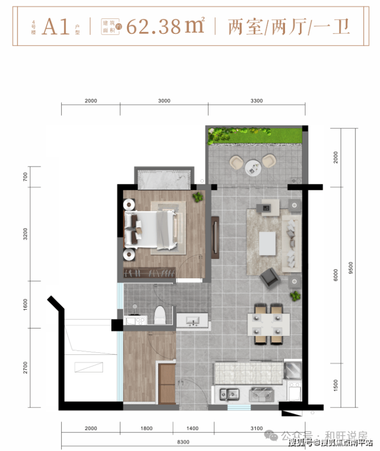 4#楼 A1户型约62㎡精致两房两厅一卫