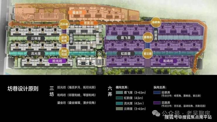 花荫弄、拾翠弄、霞飞里、虹韵里等主题巷道,宽度约3-4.5米,尺度亲切,一步一景