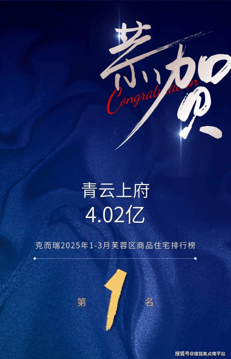 克而瑞长沙2025年1-3月芙蓉区商品住宅排行榜,青云上府以4.02亿元的销量登顶TOP1 。