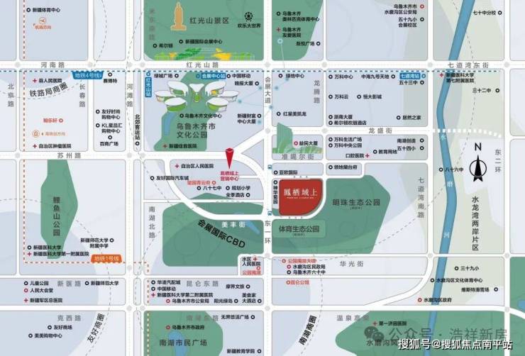 约157亩社区生态体育公园、约2500亩明珠生态公园、丝绸之路欢乐大世界、乌鲁木齐市文化公园、国家4A级景区红光山,本项目被超过2万亩公园绿地包围。