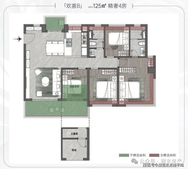 【同等面积至高得房率, 125方比肩160方 】