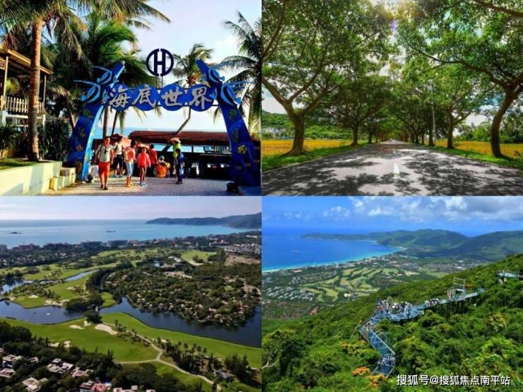 亚龙湾国际高尔夫球场、红峡谷高尔夫球场、 玫瑰谷、天堂热带雨林度假公园、最美公路太阳湾,红树林湿地保护区,亚龙湾海岸线等