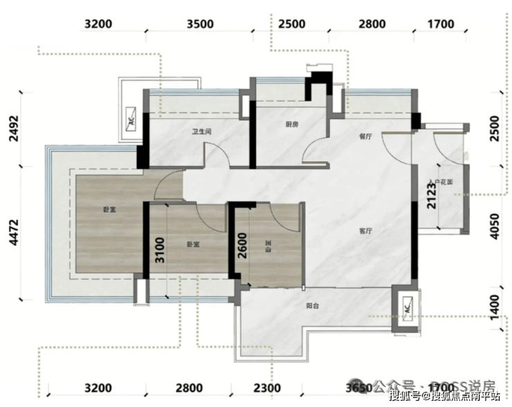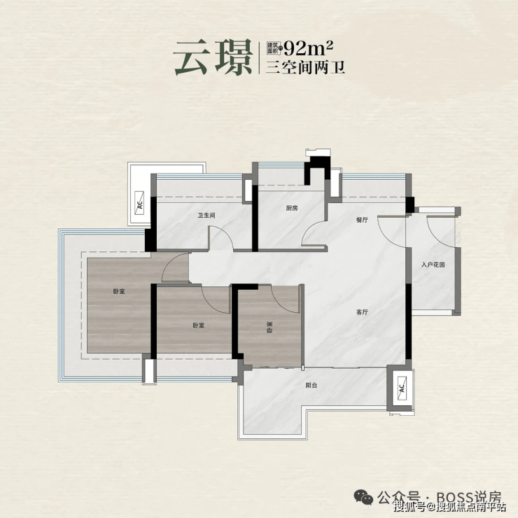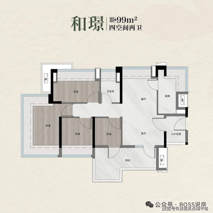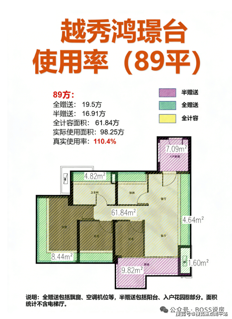产品亮点: 新规高使用率(据称超 100%),全屋飘窗,搭配入户花园与大面积阳台,空间通透。