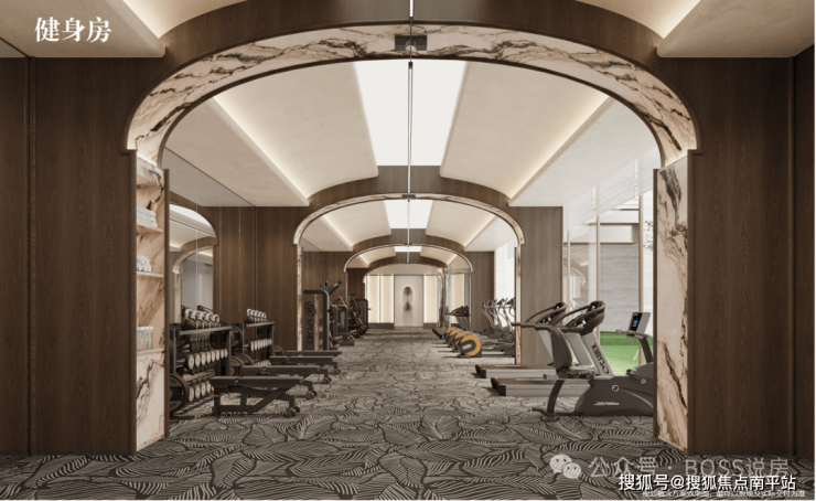 酒店式会所: 引入板块 首个酒店式会所 ,采用大面积玻璃幕墙设计。会所内规划有 品质会客区、健身休闲区、雅致休憩区、游泳池 等功能空间,为业主提供专属的高端休闲场所。