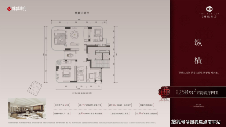 从户型设计上,煌盛这次也是疯狂炫技。有三种产品,一线临江双U全景舱大平层、第四代住宅和越级新规户型。一线临江的双U全景舱,一共两种户型,建面约258㎡五房大平层和建面约200㎡四房三卫大平层。