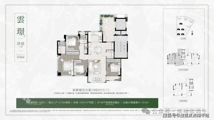 - 产品业态:规划建面约95-124平高得房率高层+11层户户空中花园洋房,包含4栋高层和5栋11层的花园洋房住宅。
