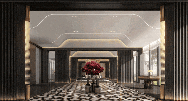 同时,项目深刻洞察 高端人居与奢旅美学的同频进化,移植YANG设计集团全球700余个酒店作品的成熟经验,将 “酒店式生活场景”的精髓无缝植入社区肌理,从 国际连锁酒店配套、架空层泛会所到楼栋公共空间,都具备奢雅气质。