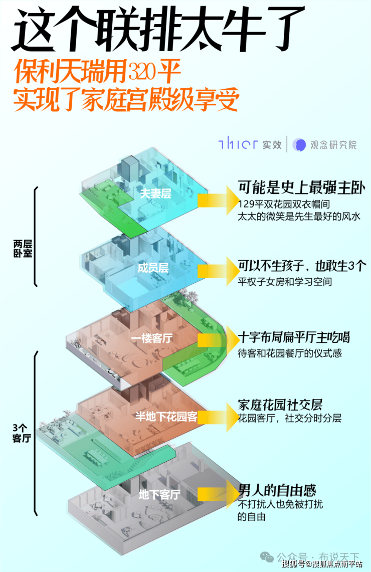与传统地上2层、地下2层的别墅相比,保利天瑞联排的 空间实用性更强,极大拓宽了活动空间。