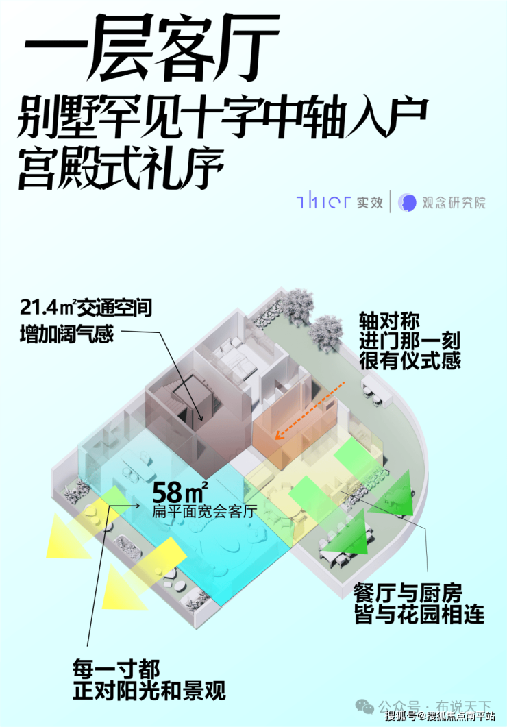 并且,同时拥有别墅的高度、使用享受和大平层的尺度,以首层为例: