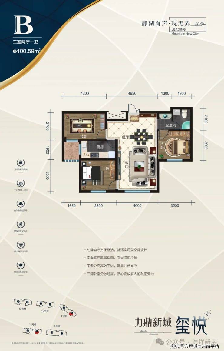 主力户型:100㎡(3室2厅1卫)、120㎡(3室2厅2卫)