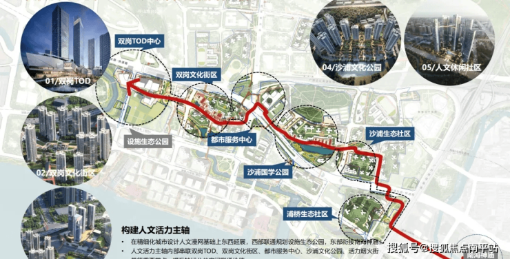 西至设施生态公园,东联南海神庙,构建串联TOD商业、文化街区、都市服务、生态社区等重点项目的漫游活力轴,重点塑造“双岗TOD中心、都市服务中心”两大综合商业地标及“双岗、沙涌”两大休闲文化街区,目前双岗TOD中心已确认引入华润万象系商业运营。