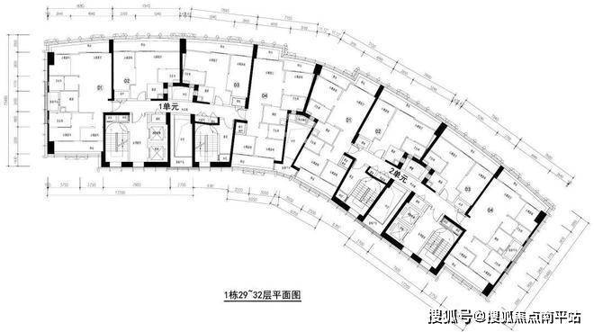 两梯四户,两个单元,平面图: